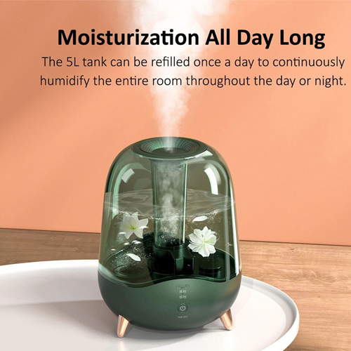 از این گذشته این محصول یک شاخصه دیگر در طراحی دارد و آن هم بدنه یکپارچه‌ای است که دارد. این دستگاه از قطعات جداگانه ساخته نشده است و طوری است که محفظه تولید بخار و قطعات مکانیکی آن در کف دستگاه تعبیه شده‌اند و مخزن آب دقیقا بالای دستگاه قرار دارد. دستگاه رطوبت ساز و بخور سرد درما Deerma F329 یک مخزن 5 لیتری دارد که معادل 10 بطری آب معدنی کوچک 250 میلی لیتری است.