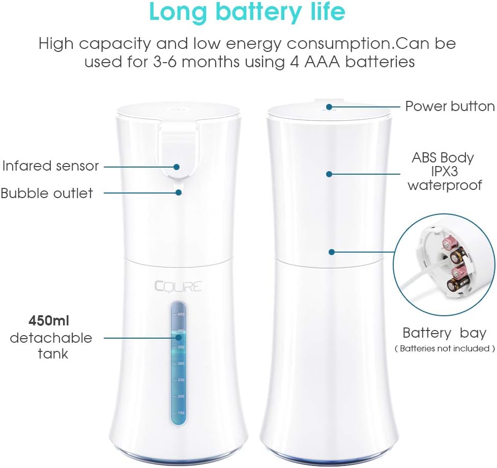 این جا مایع اتومات دارای یک مخزن مایع با ظرفیت 450 میلی لیتر است که شما میتوانید آن را با انواع مایع دستشویی و ظرفشویی و یا حتی کرم و لوسیون های آرایشی یا حتی ژل یا مایع ضد عفونی پرکنید و استفاده کنید.درب مخزن این دستگاه از قسمت بالا باز می شود و شما هر مرتبه به راحتی می توانید مایع مورد نظر را شارژ کنید و استفاده کنید.