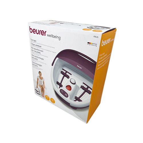 جکوزی و ماساژور پا بیورر مدل FB21 با عملکرد 3 گانه پدیکو (لایه بردار) مادون قرمز (هیدروتراپی) غلطک ریلکسیشن (ماساژ) این محصول را به یک ماساژور تمام عیار تبدیل کرده است. جکوزی پا بیورر با داشتن 3 سری متفاوت برای لایه برداری پوست پا، مادون قرمز برای حفظ گرمای آب داخل ماساژور که به گردش خون در پا کمک بسیاری میکند و همچنین غلطک ماساژ که برای ریلکسیشن پا و نقطه رفلکس پا است. ماساژور FB21 بیورر به وسیله حباب ساز با ایجاد حباب هنگام کارکردن باعث بهتر شدن گردش خون وحس شادابی پوست می شود. طراحی این محصول به گونه ای است که افراد تا سایز پا 49 میتوانند از این محصول استفاده کنند، همچنین هنگام استفاده از FB21 هیچ گونه تراوشی به بیرون ندارد ودارای دستگیره تا شو برای حمل راحتر کاربر و محفظه سیم برای جمع آوری سیم برق دستگاه بعد از ماساژ است.چنانچه قصد خرید ماساژور پا برای پاهایتان دارید بدون شک یکی از بهترین گزینه ها است.