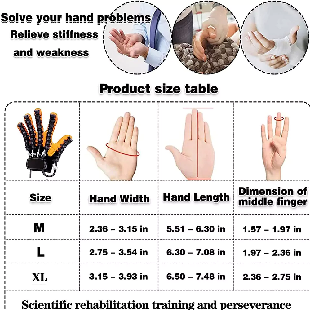 📏 اندازه‌های موجود و راهنمای سایز بندی دستکش رباتیک توانبخشی دست و انگشتان