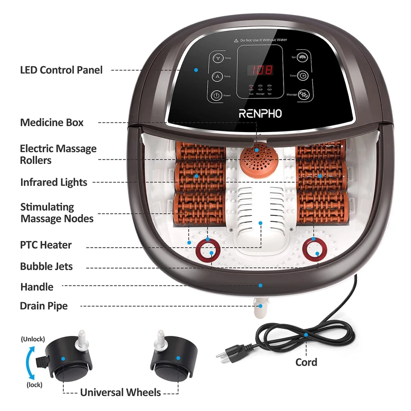ماساژور حمام پا RENPHO دارای چراغ مادون قرمز است که می تواند باعث راحتی و بهبود محیط در حوضچه شود و تمیز کردن آن را آسان تر کند.